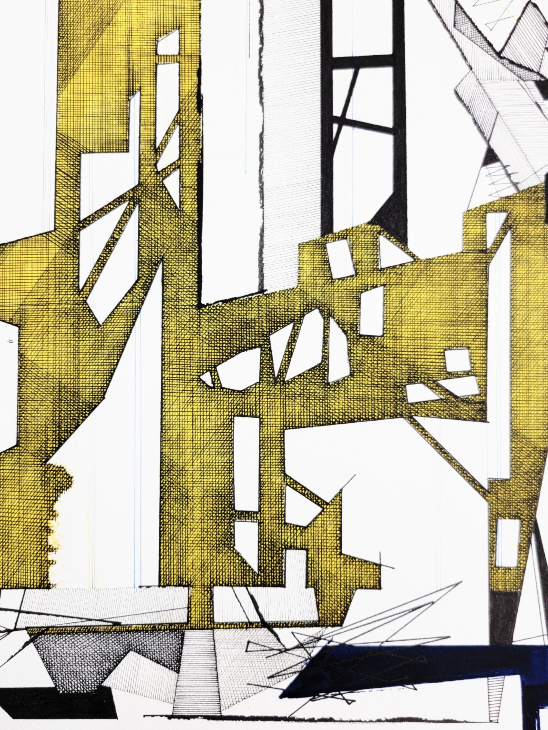 A través de formas geométricas fragmentadas y una paleta de colores que evoca tanto la desolación como la esperanza, esta pieza invita a los espectadores a reflexionar sobre la capacidad de resistir y reconstruir.